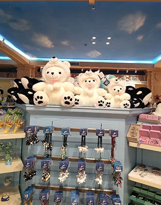 其中上海海洋館的明星動(dòng)物虎鯨的周邊玩偶,背包均來(lái)自我公司的設(shè)計(jì)開發(fā)。