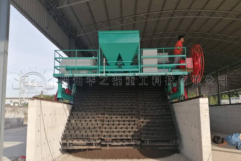 The chain compost turning machine is suitable for deep groove composting of organic solid wastes, such as livestock manure, sludge and garbage. The machine walks along the rail of the fermentation groove, and its high efficiency turning operation is conducive to speeding up the fermentation of materials in the fermentation tank, reducing moisture content and improving composting quality. The series specifications of the machine can meet the width of various fermentation groove.